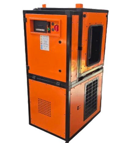 TVE 25: suitable for disinfesting and sanitizing grain elevators used for the stocking of raw and finished materials, TVE 25 allows the raising of temperatures inside grain elevators in a relatively short time ensuring the reaching of the thermal parameters necessary to guarantee the elimination of insect infestation. Aside from satisfying all CE branded machinery directives, this machine is ATEX certified for use in zone 21 areas.